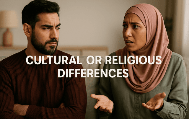 Cultural or religious differences can create tension in a relationship, especially if the partners come from different backgrounds with distinct values, traditions, or beliefs. These differences may manifest in areas like family expectations, holiday celebrations, raising children, or dietary practices.