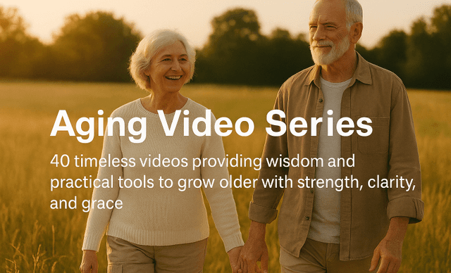 Our Aging Videos collection features 40 timeless resources providing wisdom and practical tools to help you grow older with strength, clarity, and grace. Each video goes beyond common advice, offering insights on healthy living, emotional resilience, and spiritual growth that can enrich your later years.