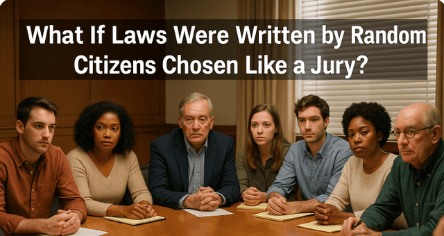 Imagine waking up one morning to find that you, an ordinary citizen, had been chosen to help write the nation’s laws. No elections, no campaigns, no professional politicians. Instead, citizens are randomly selected to serve on panels, much like jury duty, and work together to create laws. This would put the power of governance directly into the hands of the people.